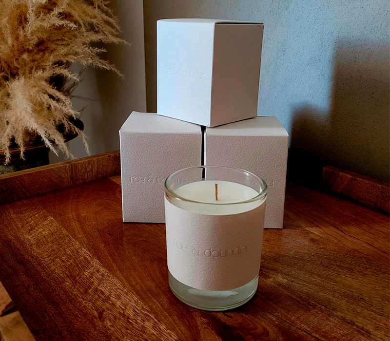 rae & daunder products burn evenly, with no soot, we use essential oils, or fragrance oils with no sulphates, parabens or phthalates and our products are made with sustainable wax, wick and container